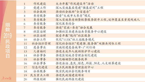 慈善事业:推进修订《广州市募捐条例》——推进修订《广州市募捐条例》,实施《创建慈善城市·广州行动》,拓展粤港澳大湾区慈善交流活动,创新开展2019年扶贫济困日暨“养成慈善为民”行动,做实各项慈善为民服务项目。
